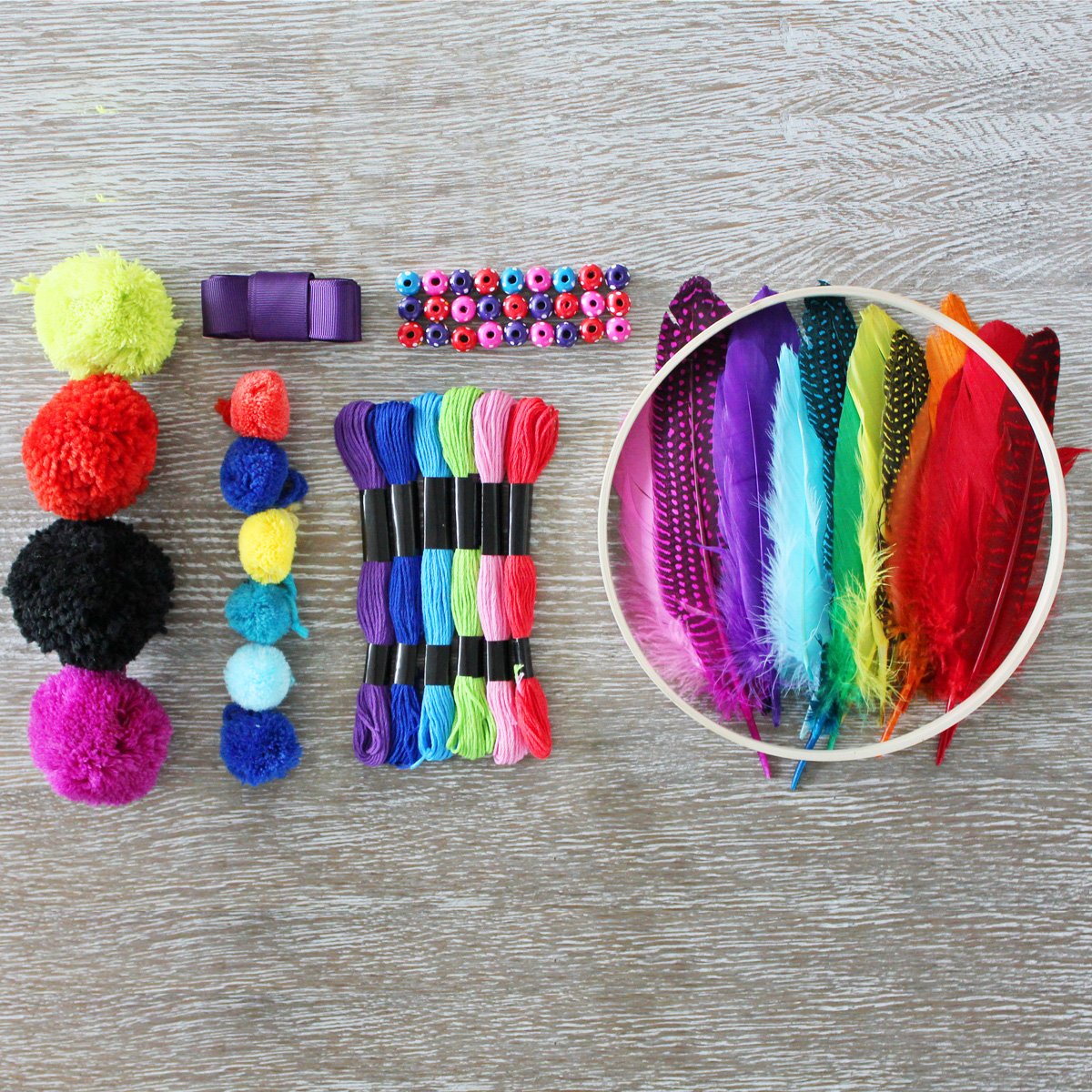 Create your own colorful dreamcatcher! This easy to make DIY kit comes with bright colorful feathers, pom poms, beads, and bold ribbon to make a one-of-a-kind creation. Weave your own design, then hang it on a bedpost or in a special place in your room for happy dreams.